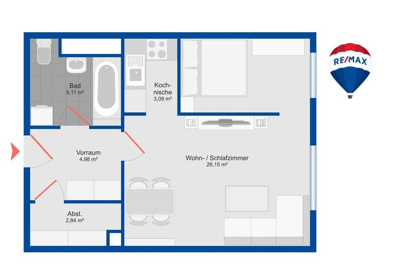 Die Wohnung verfügt über ein helles Wohnzimmer mit praktischer Küchennische, das ausreichend Platz für einen gemütlichen Wohn- und Essbereich bietet. Das separat begehbare Schlafzimmer sorgt für angenehme Rückzugsmöglichkeiten. Das Badezimmer ist mit Badewanne und WC ausgestattet. Zusätzlich bietet ein Abstellraum wertvollen Stauraum im Inneren der Wohnung. Ein eigenes Kellerabteil ergänzt das Raumangebot. Die Beheizung erfolgt über eine Hauszentralheizung. Durch die Lage im 8. Stock genießt man einen schönen, freien Ausblick sowie eine angenehme Lichtdurchflutung der Räume.