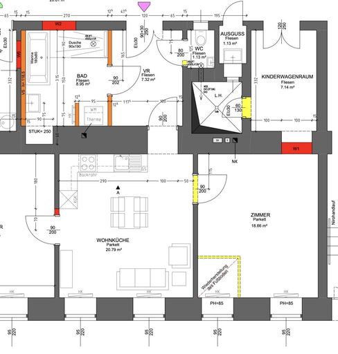 WohnKüche - Schlafzimmer - Kinder- oder Arbeitszimmer - Badezimmer - WC - Vorraum