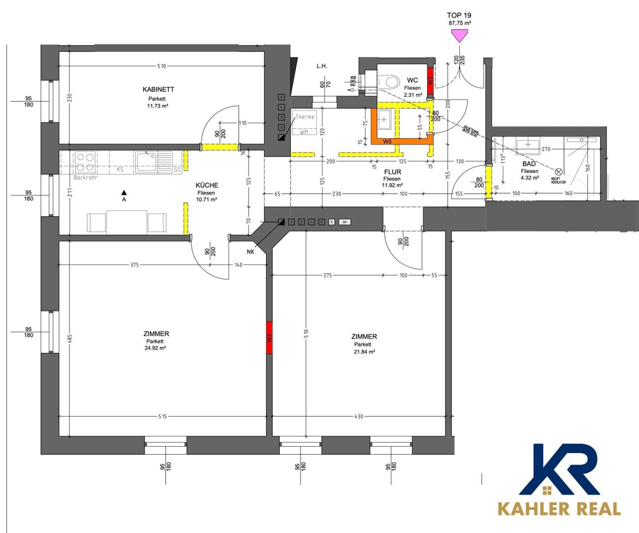 Wohnzimmer - Schlafzimmer - Kinder- oder Arbeitszimmer - Küche - Badezimmer - WC - Vorraum