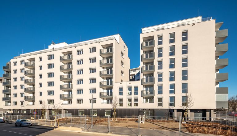 Das Wohnhaus gliedert sich in 3 Bauteile (Stiege A, B und C) zu je 7 Stockwerken. Insgesamt stehen 167 freifinanzierte Wohnungen zur provisionsfreien Vermietung zur Verfügung.