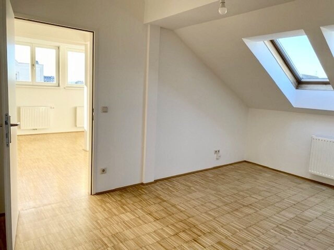 In einem gepflegten Altbau im Dachgeschoßausbau in der Nähe der U1-Keplerplatz und dem Waldmüllerpark liegt die sonnige Wohnung im 4. Stock. Lift vorhanden.