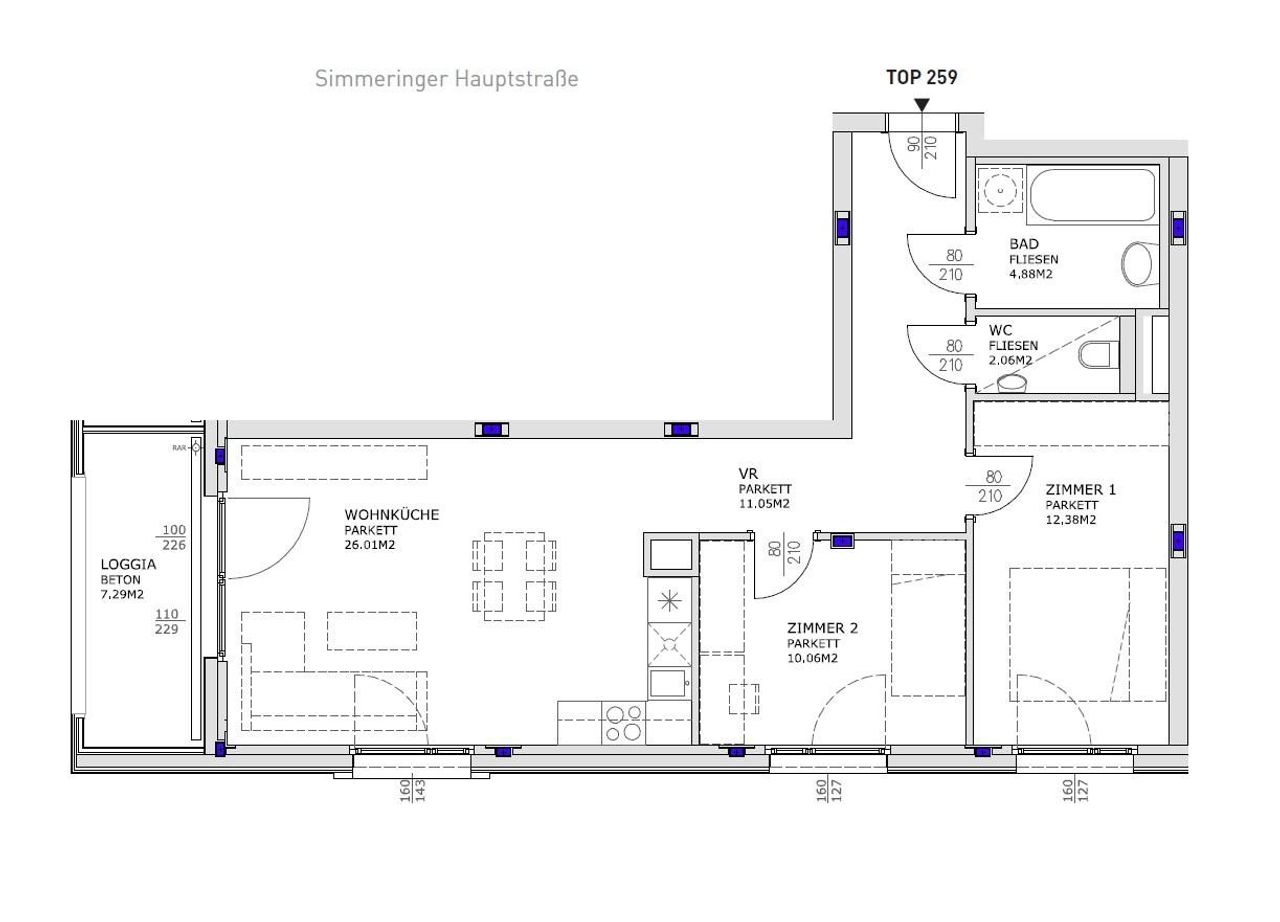 ZUR VERMIETUNG gelangt diese schicke -Zimmer Neubauwohnung mit großer, südseitiger Loggia in der Simmeringer Hauptstraße.