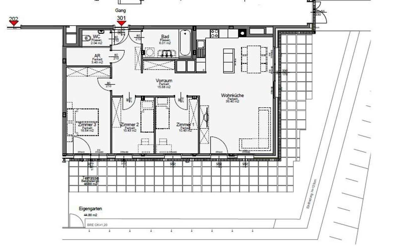Bitte beachten Sie, dass die Fotos in einer ähnlichen Wohnung mit exakt gleicher Ausstattung aufgenommen wurden, da die Top 301 noch bis 30.6.2026 bewohnt ist.