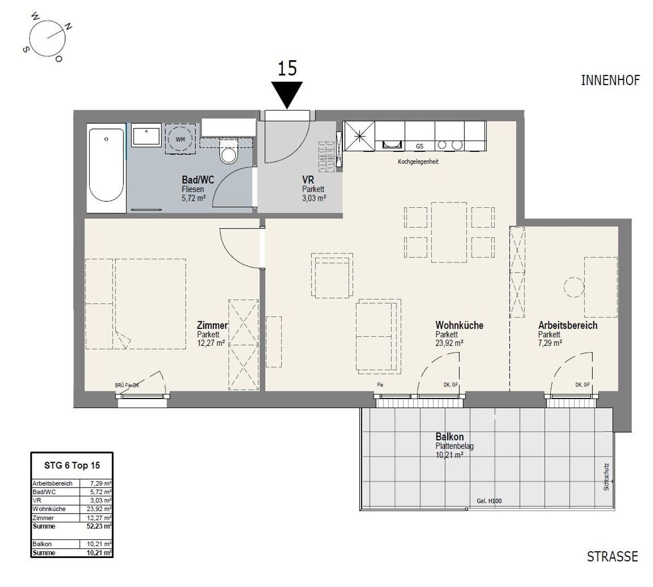 • Bad mit Badewanne, Waschtisch, WC und WM-Anschluss