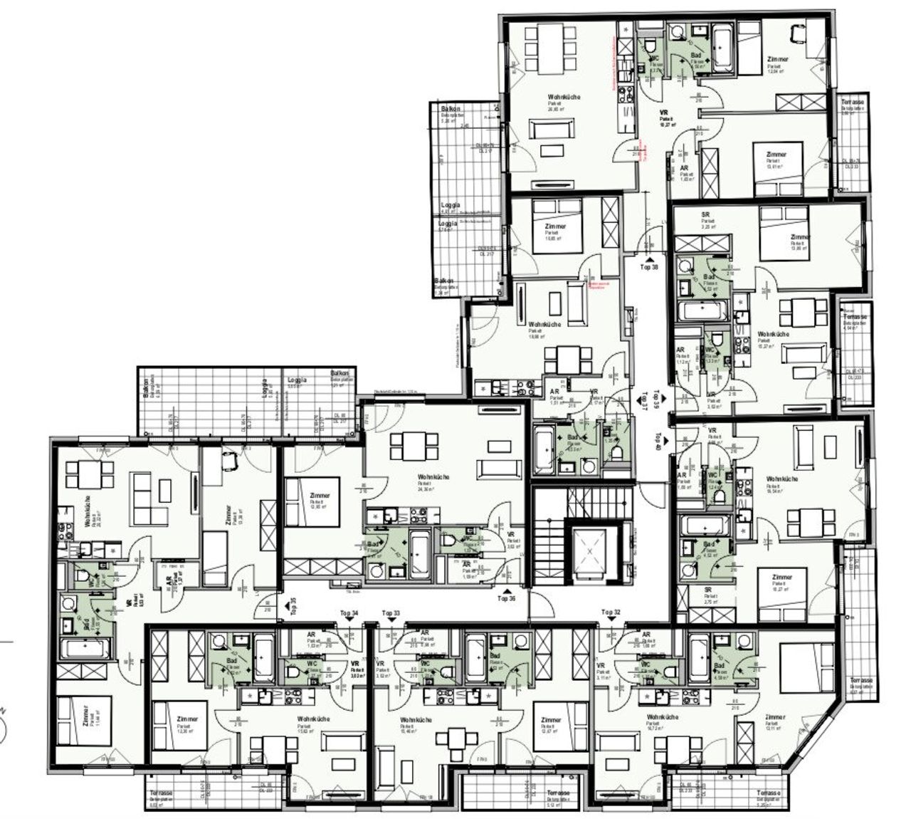 Betreten Sie die Wohnung und lassen Sie sich von der lichtdurchfluteten Wohnküche begeistern, die ideal für gesellige Abende mit Freunden oder gemütliche Stunden mit der Familie ist. Die offene Küche ist mit hochwertigen Fliesen ausgestattet. Der elegante Eichenparkettboden in den Wohnräumen sorgt für eine warme und einladende Atmosphäre, während die Fußbodenheizung an kalten Tagen für behagliche Wärme sorgt.