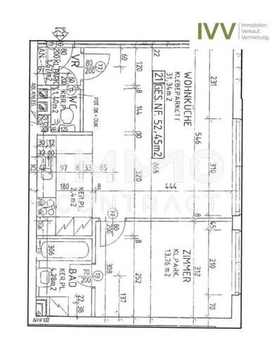 Vorraum, Bad, WC, Wohnküche, Schlafzimmer.