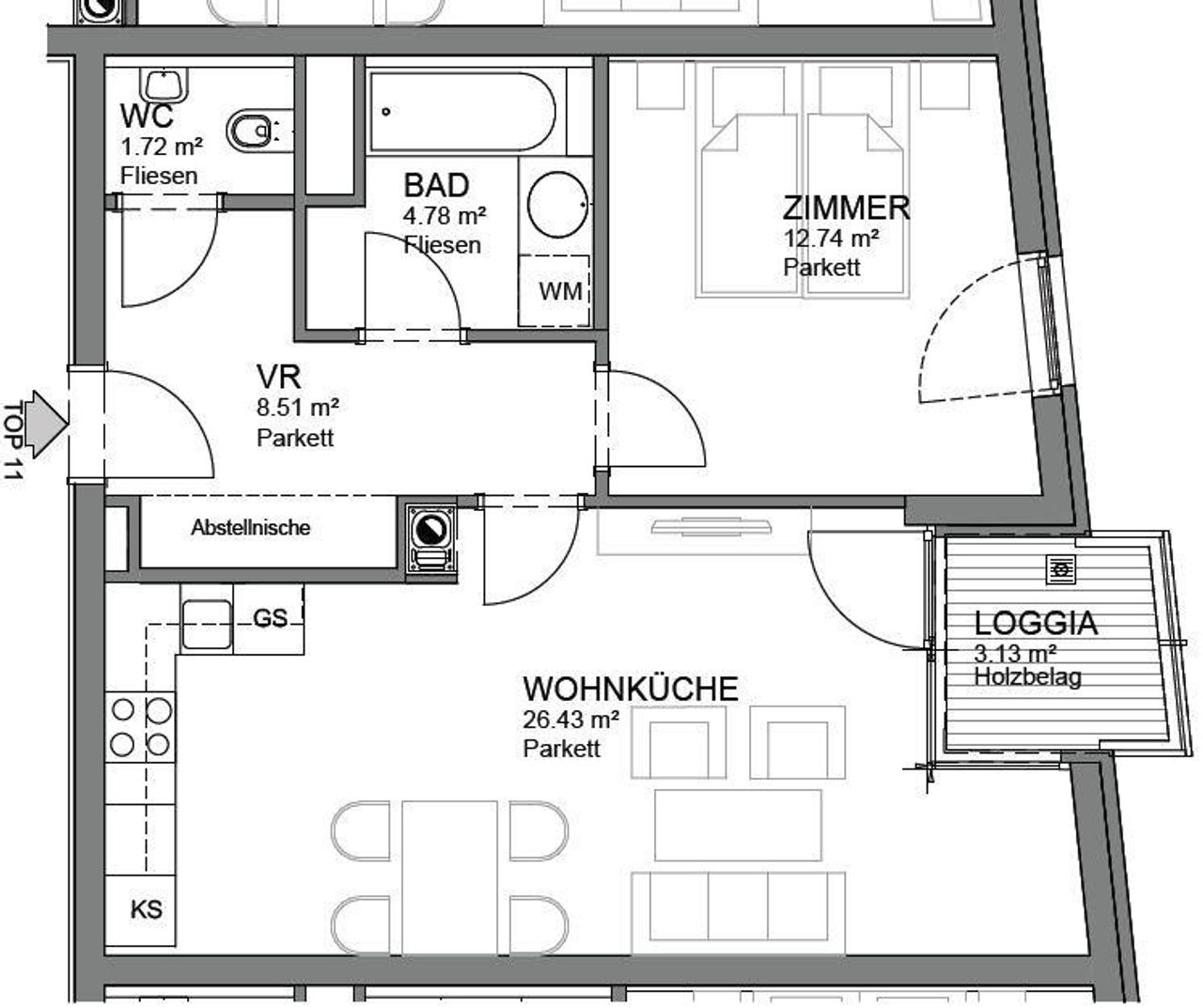 • Garagenplatz direkt im Haus á € 110 inkl. Ust / Monat