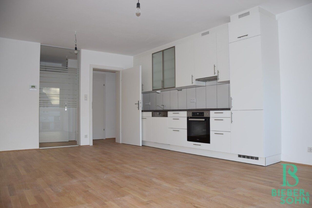 Durch die terrassierte Bauweise befindet sich die Wohnung von der Strassenseite aus im 1. Stock, die mit dem Lift barrierefrei zu erreichen ist. Vom Vorraum aus ist der große Wohnraum mit der exklusiven Küche und den bodentiefen Fenstern zu betreten und weiterführend...