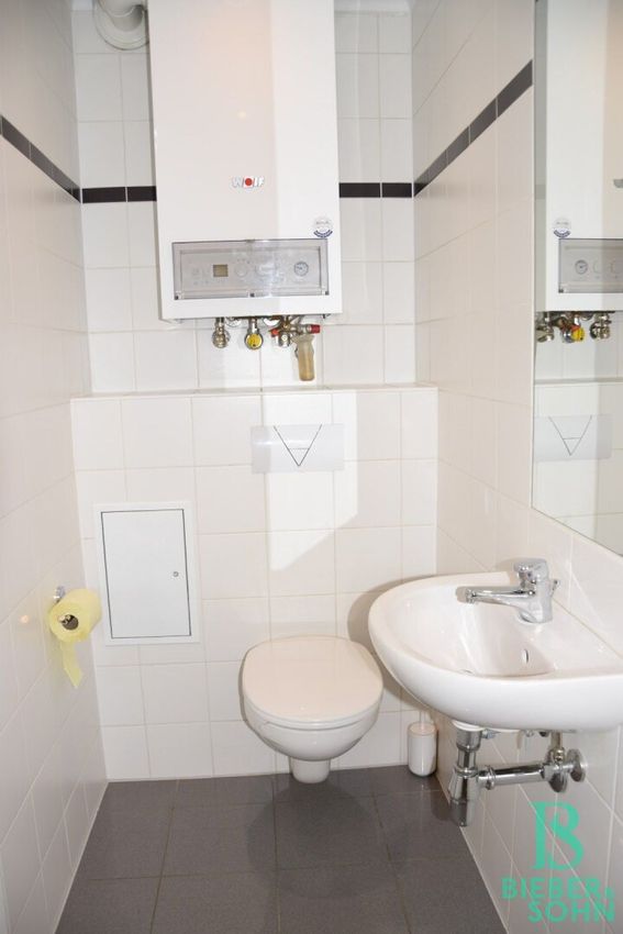 Die Ausstattung ist hochwertig, Parkett/Fliesenböden, komplett eingerichtete Küche mit Miele-Geräten, Telefonanschluß, SAT-Anlage, Gasetagenheizung. Ein Kellerabteil ist der Wohnung ebenfalls zugeordnet.