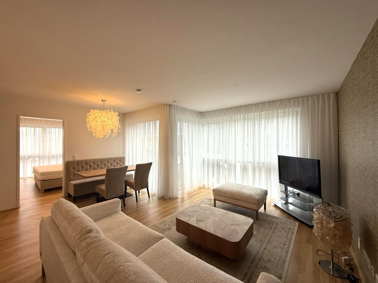 Alle Räume sind komplett möbliert und bezugsfertig – vom Sofa über Esstisch bis hin zum Schlafzimmerinventar.