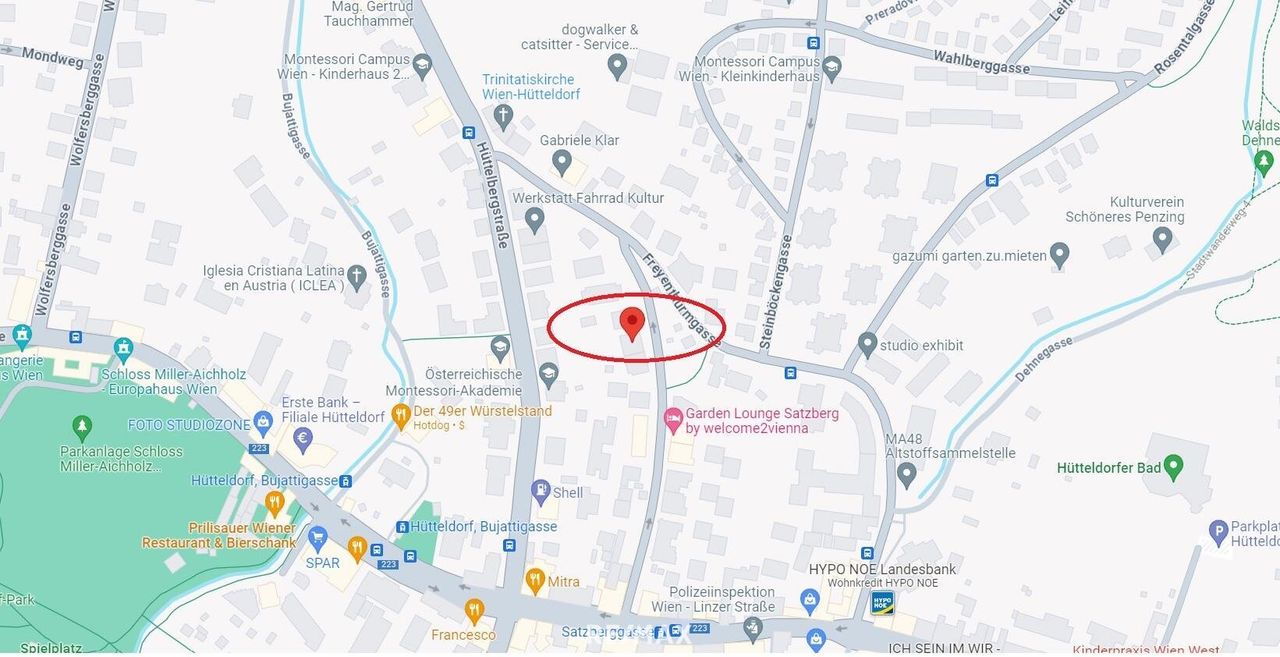 Die Haltestelle der Straßenbahnlinie 49 ist ca. 250 m entfernt, die Buslinien 43B, 49A, 50A, 50B, 52A, 52B befinden sich in unmittelbarer Nähe und die U4 Station Hütteldorf ist mit dem Bus oder zu Fuß in wenigen Minuten erreichbar.