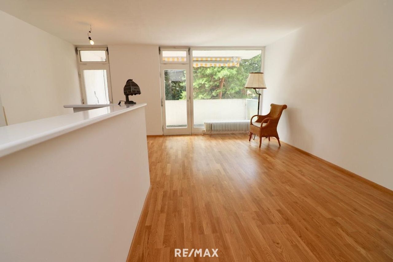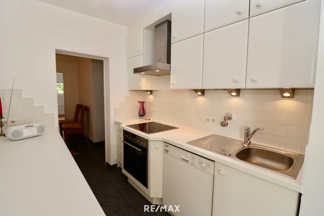 Das Herzstück dieser Wohnung ist der helle Wohnküchen-Bereich mit dem Zugang auf den großzügigen Balkon, der einen idyllischen Blick ins Grüne gewährt. Hier können Sie entspannte Abende im Freien genießen oder Ihre grünen Fähigkeiten entfalten.