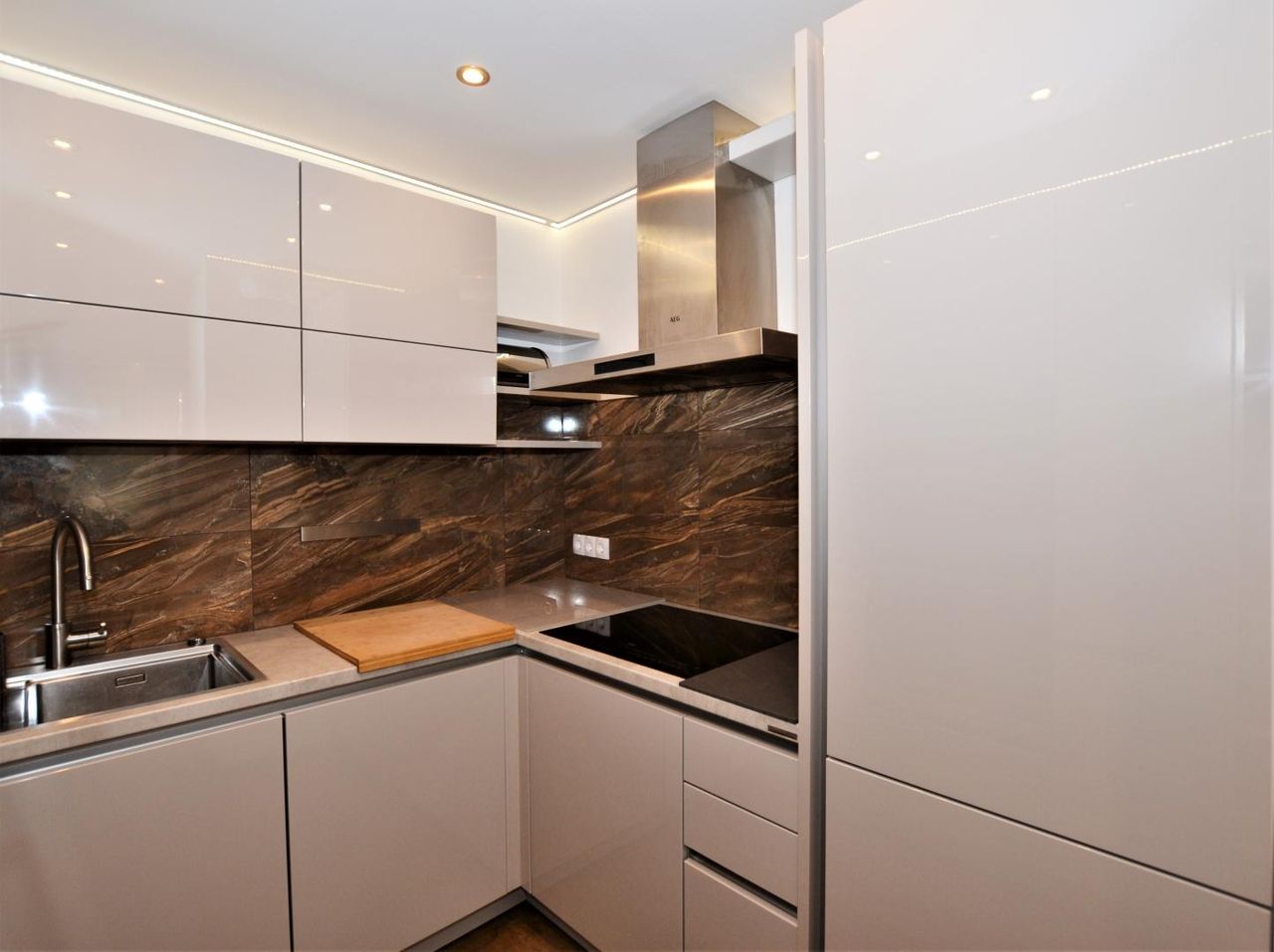 Das Wohnzimmer ist mit einer Couch und einer Wohnwand ausgestattet, während das Schlafzimmer über einen geräumigen Schrank verfügt. Die moderne Küche ist voll ausgestattet und beinhaltet sämtliche notwendigen Elektrogeräte: E-Herd, Backrohr, Geschirrspüler, Kühlschrank, Dunstabzug mit Abluft und Mikrowelle. Im Vorzimmer finden sich eine Garderobe sowie weitere Verstaumöglichkeiten, die für Ordnung im Eingangsbereich sorgen.