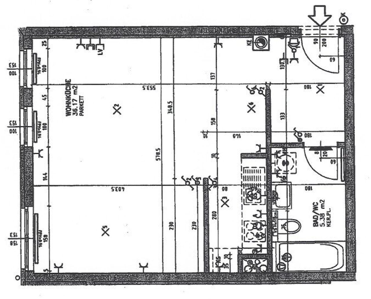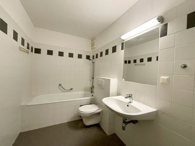 - Bad mit Wanne, Waschbecken, WC und WM-Anschluss