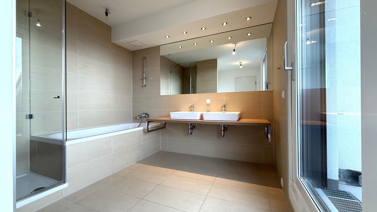 • Badezimmer mit Badewanne, Dusche und Doppelwaschbecken (7,65m²)