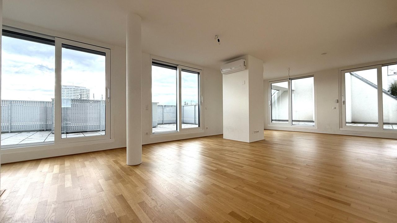 Zur Vermietung gelangt ab 01.10.2025 eine sensationelle PENTHOUSE-Wohnung (Baujahr 2022) in Alt-Ottakring mit 130,86m² Wohnfläche und zusätzlich 131,03m² Terrassenfläche, sowie einem 8,07m² großen Balkon in der Arnethgasse nahe der S-Bahn und U3 Ottakring. Die Wohnung ist auf 3 Ebenen aufgeteilt, wobei die Eingangsebene barrierefrei vom Stiegenhaus und die Wohnebene mit einem DIREKTLIFT erreichbar sind. Ein Kellerabteil ist der Wohnung zugeordnet. Das Haus verfügt weiters über eine Tiefgarage (Stellplätze á € 90,- bto) und einen großzügigen Fahrradabstellraum. RAUMAUFTEILUNG IN STICHWORTEN Eingangsebene 1. DG • großzügiger Vorraum (5,96m²) • Zimmer (11,85m²) • Zimmer (10,61m²) • Badezimmer mit Dusche, WC, Waschbecken und Waschmaschinenanschluss...