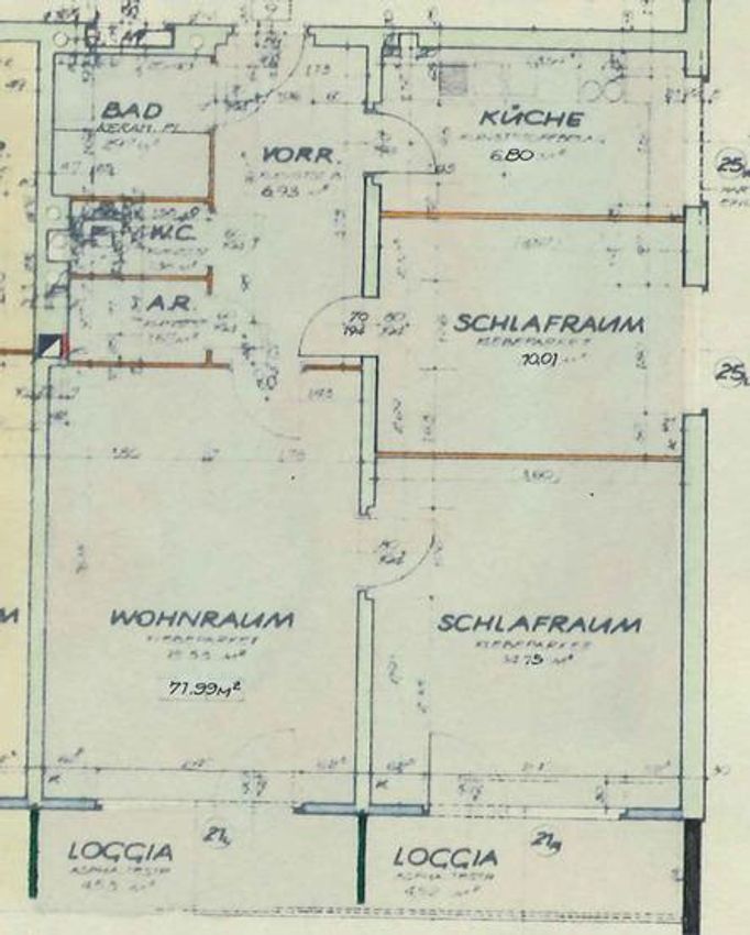Fläche laut Nutzwertgutachten und Plan: 71,99 m2 INKLUSIVE Loggien (zweimal ca. 4,5 m2).