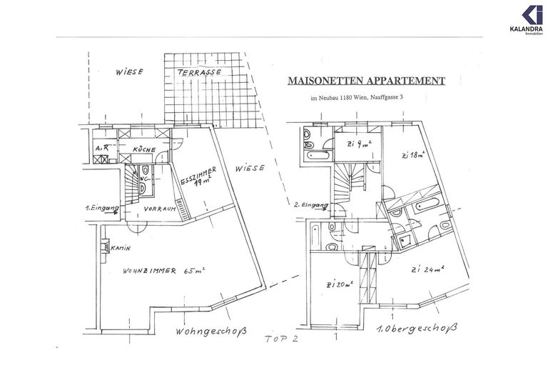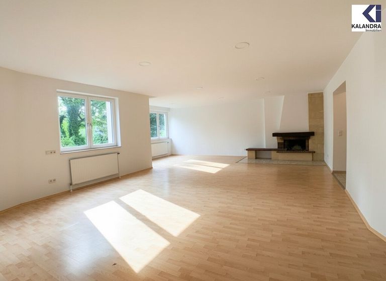 NEUBAUMIETWOHNUNG mit TERRASSE und kleinem GARTEN Diese im Erdgeschoß und 1.Stock eines Neubaugebäudes (BJ. 1981) gelegene Maisonettewohnung bietet auf eine Wohnfläche von ca. 222m² folgende Raumaufteilung: Erdgeschoß: Vorraum, großer Wohnsalon mit ca. 65m² mit offenem Kamin, Eßzimmer (ca.19m²) mit Ausgang zu einer ca. 50m² großen Gartenterrasse (inkl. Wiesenfläche), große, komplett eingerichtete Küche, anschließender Abstell-/ Wirtschaftsraum, Gäste-WC; vom Vorraum führt eine Marmor-Stiege in die zweite Ebene Obergeschoß: zentraler Vorraum (zweiter Eingang), 4 Schlaf-/ Zimmer (ca. 18m², 20m², 24m², 9m²), teilweise ausgestattet mit Einbauschränken, 3 Badezimmer mit je einer Toilette sowie einem separaten Duschbad. Ausstattung: - in den Wohnräumen Fertig-Parkettboden - 2...