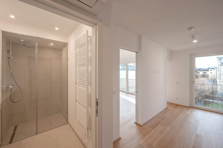 Jede Wohnung ist nicht nur mit einer Freifläche ausgestattet, sondern weißt auch hochwertige Materialien als auch Ausstattung aus: