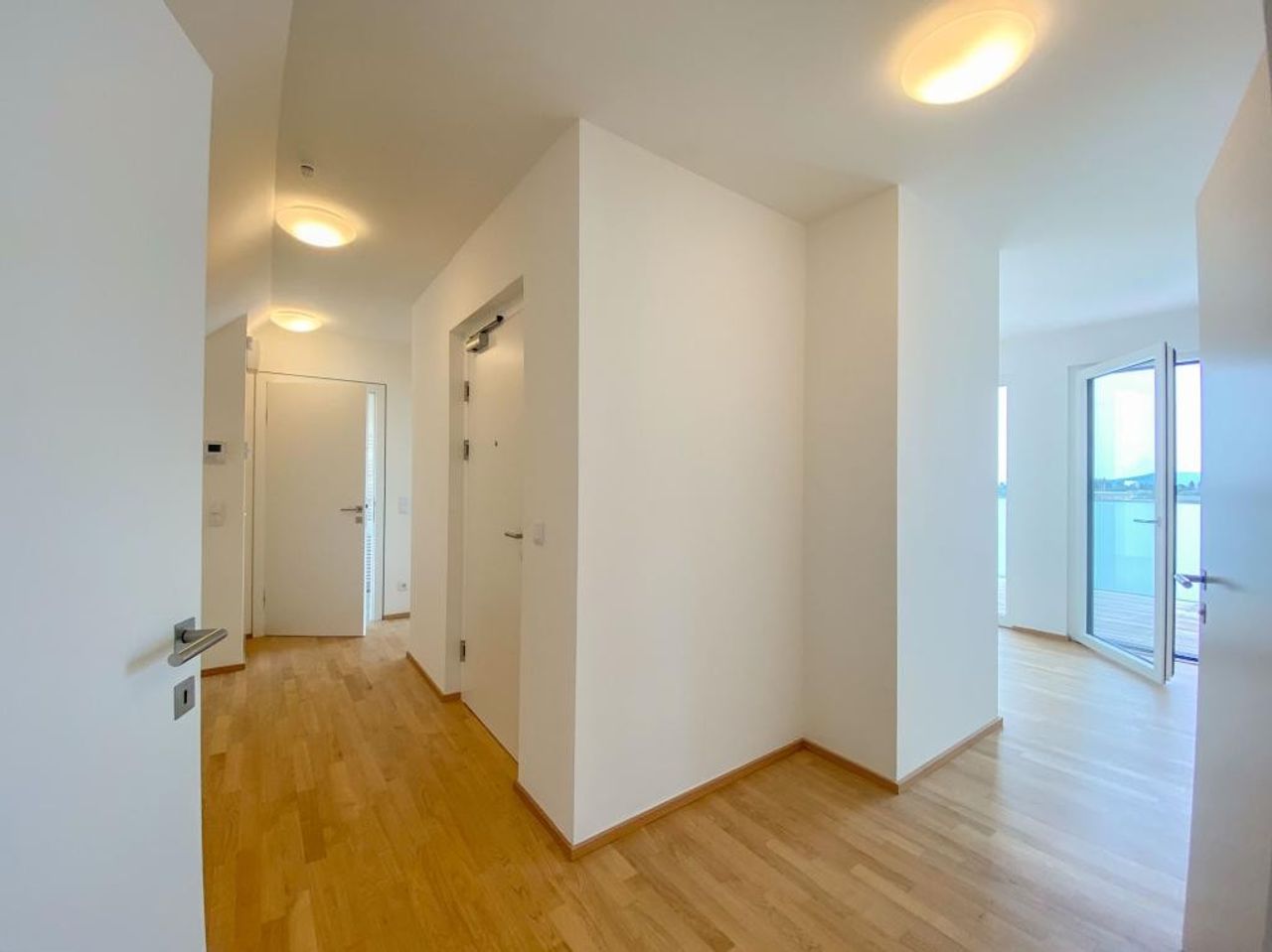 In a high-quality residential complex completed in 2019 by a renowned developer, a fully air-conditioned 3-room penthouse with a south-facing terrace and optional garage parking spaces is available for rent (initial fixed term of 5 years).