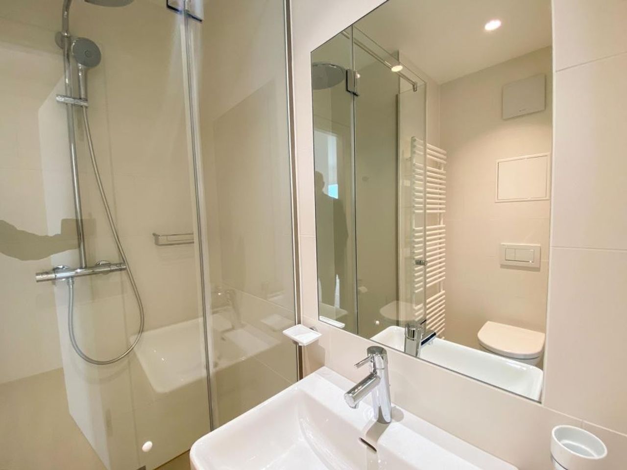 * Bad 1 ( Gästebad ): Dusche, WC, Handtuchtrockner, Waschbecken