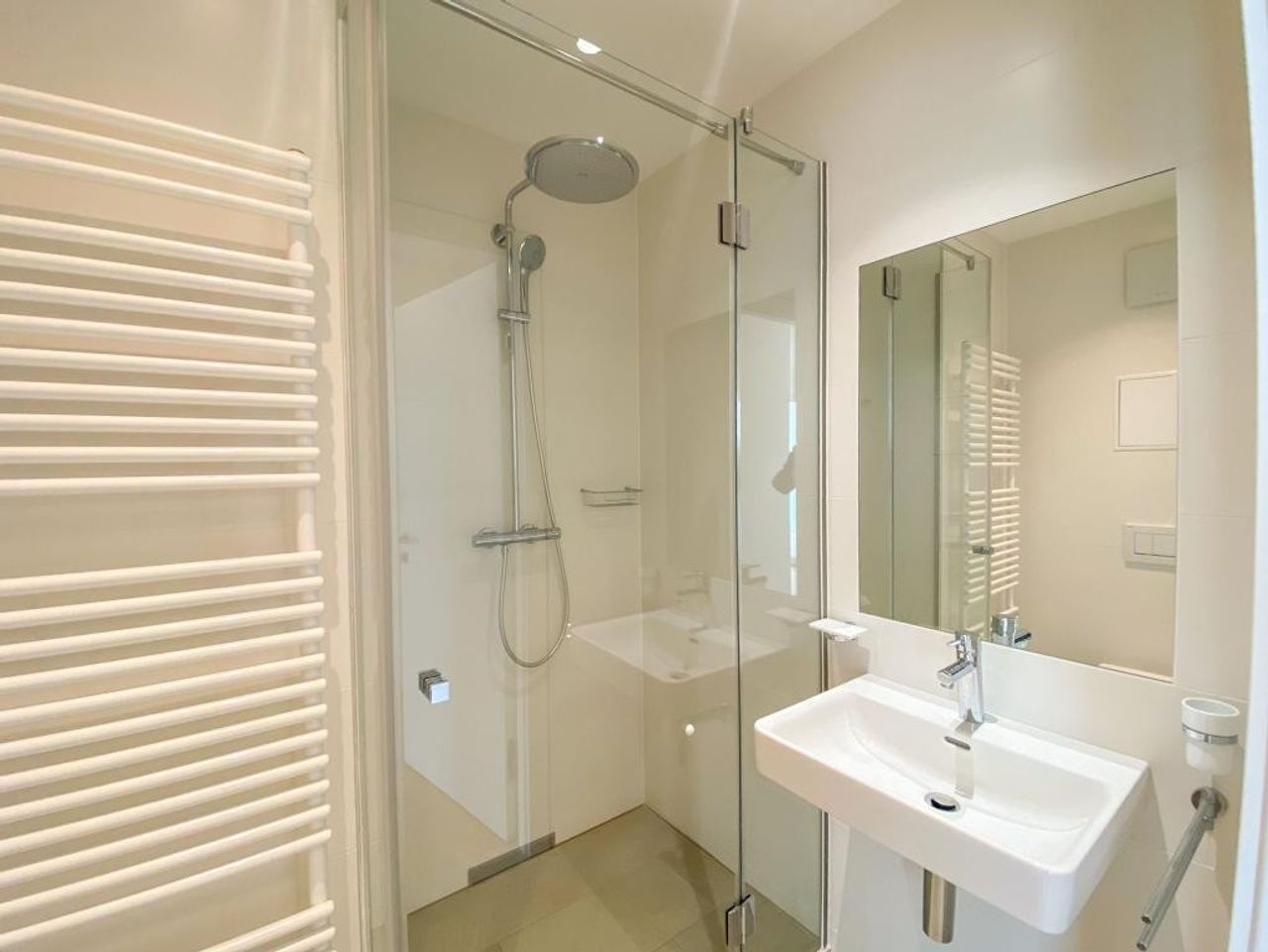 * Bathroom 1 ( guest bathroom ): shower, WC, towel warmer, washbasin