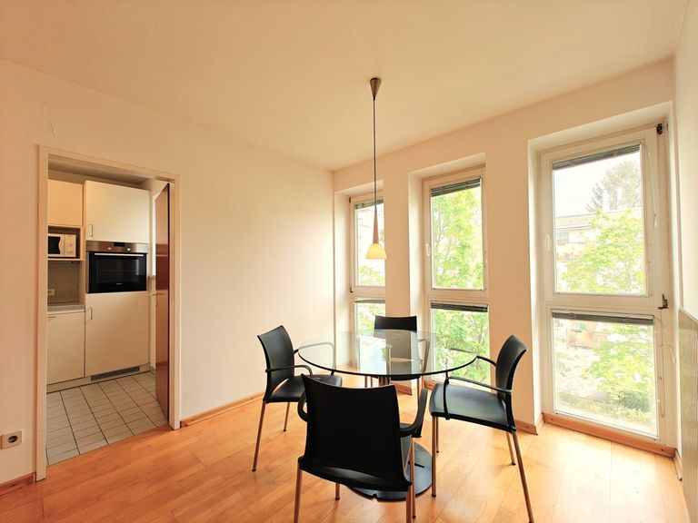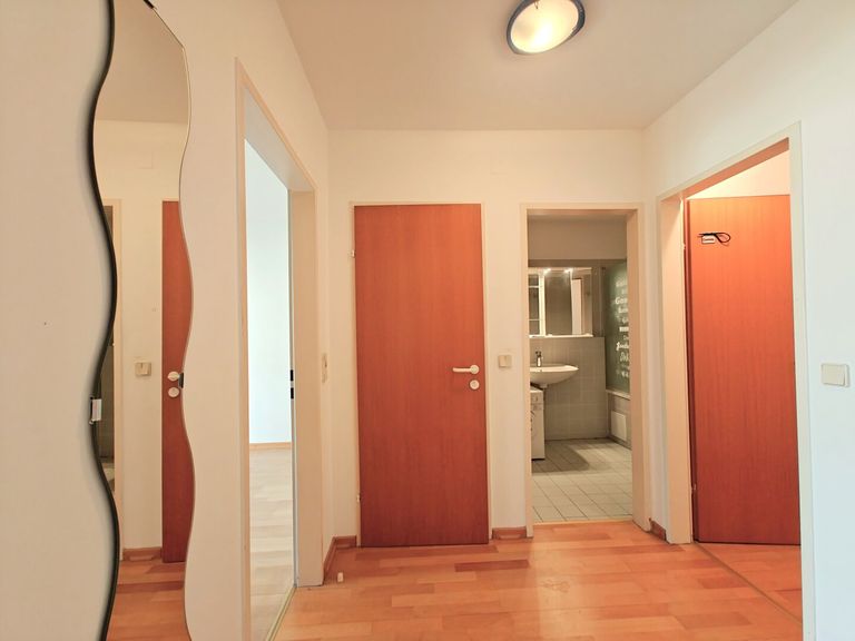Gerne dürfen wir Ihnen diese sehr gut aufgeteilte 2 Zimmer Erker-Wohnung im 2. Liftstock anbieten. Die Wohnung liegt in einem um 1989 erbauten Gebäude mit Tiefgarage (optional 125€/Monat brutto für Stellplatz). Wohzimmer und Schlafzimmer sind Richtung Ost zur wenig befahrenen Gasse ausgerichtet. Durch die vielen Grünflächen in der Umgebung ist die Wohnung ideal für Natursuchende, bei gleichzeitiger städtischer Infrastruktur. Die Innenstadt ist in 16 Fahrminuten per Rad oder 22 Minuten mit der Straßenbahn erreichbar.