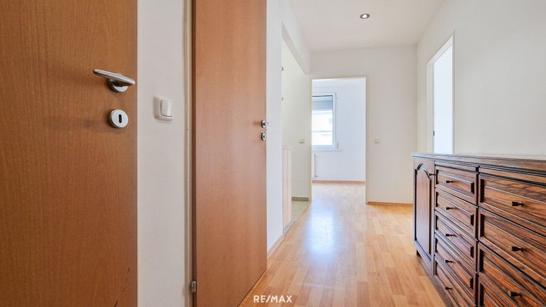 Parkettboden (Wohnzimmer), Laminat (Schlafzimmer und Diele), Fliesen (Kochnische, Bad, Balkon und Abstellraum), Außenrollläden, Zentralheizung (Fernwärme, keine lästige Therme in der Wohnung), Lift, Kellerabteil, Waschküche mit Trockenraum sowie mehrere Fahrradabstellplätze. Angaben lt. Energieausweis: HWB 101,9 kWh/m²a, fGEE 2,67