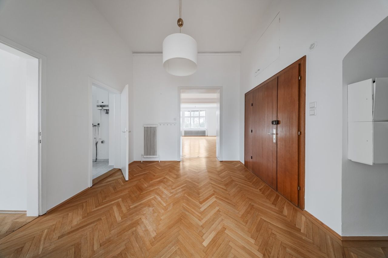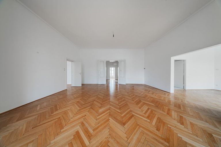 Das Herzstück der Wohnung ist das beeindruckend große Wohnzimmer mit viel Platz für einen großzügigen Essbereich. Von hier aus gelangen Sie direkt auf die Terrassen, die zum Entspannen und Genießen einladen.