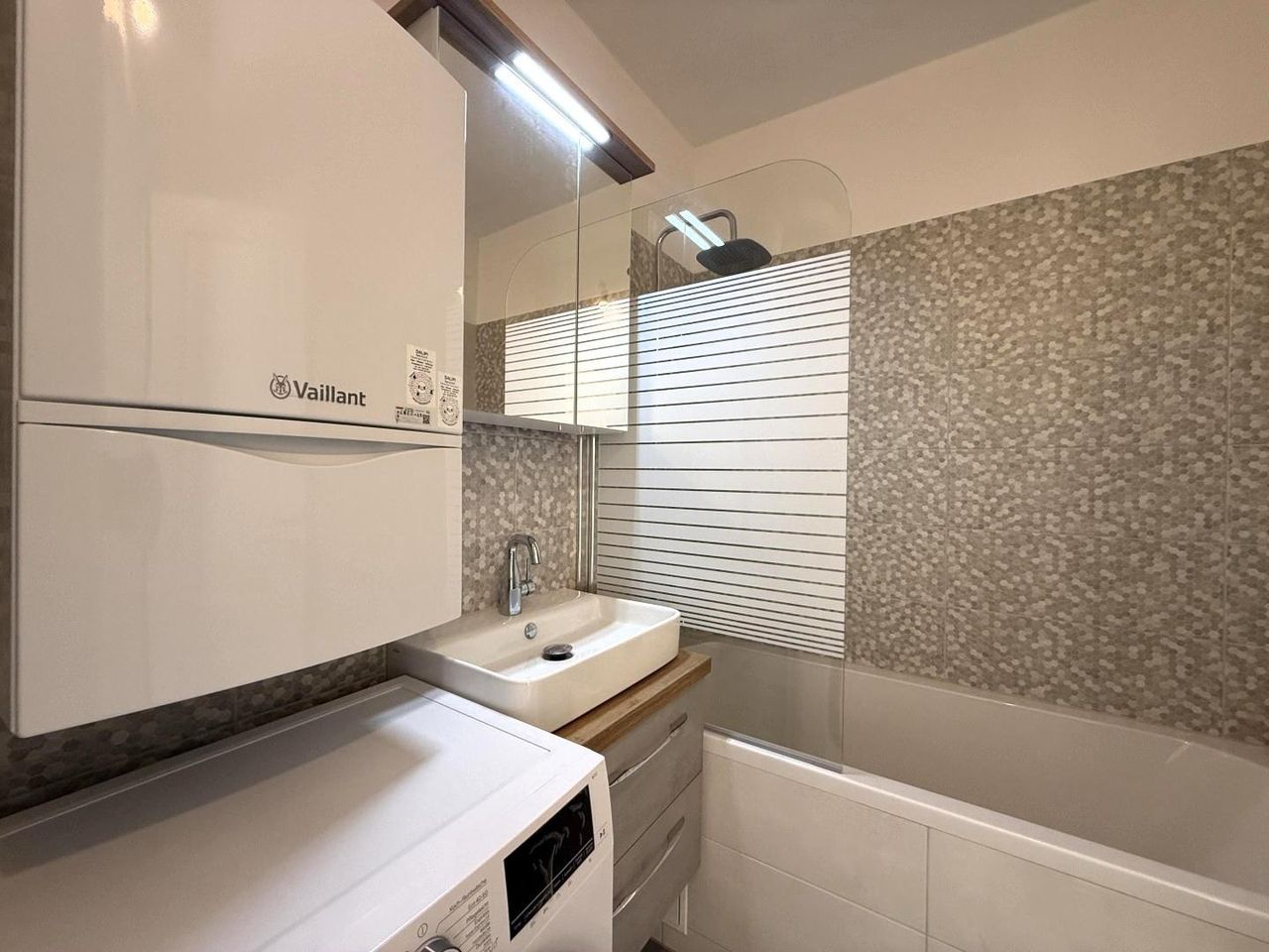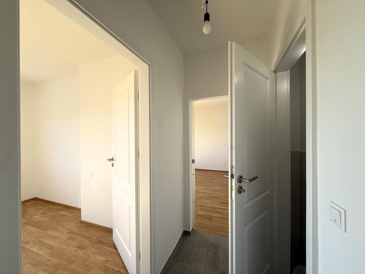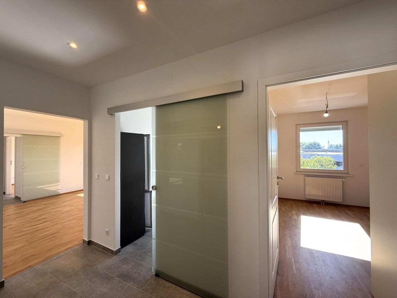 Mit einer Wohnfläche von 67,75 m² überzeugt die Wohnung durch einen besonders effizienten Grundriss: zwei getrennt begehbare Schlafzimmer, ein großzügiges Wohnzimmer, ein moderner Vorraum, eine voll ausgestattete Küche, ein Badezimmer mit Badewanne und eine separate Toilette, alles auf nur 67 m².