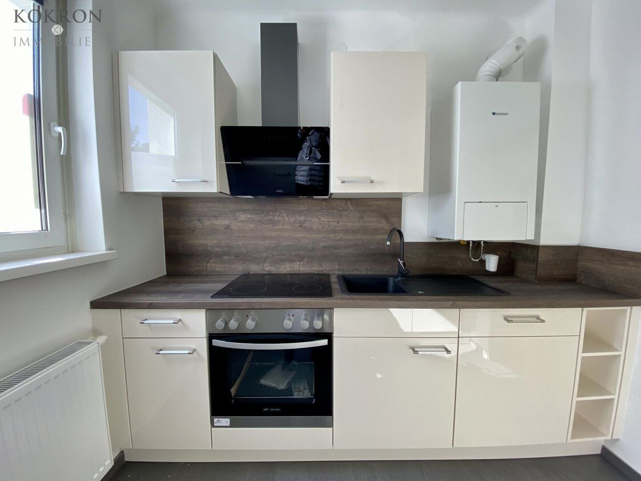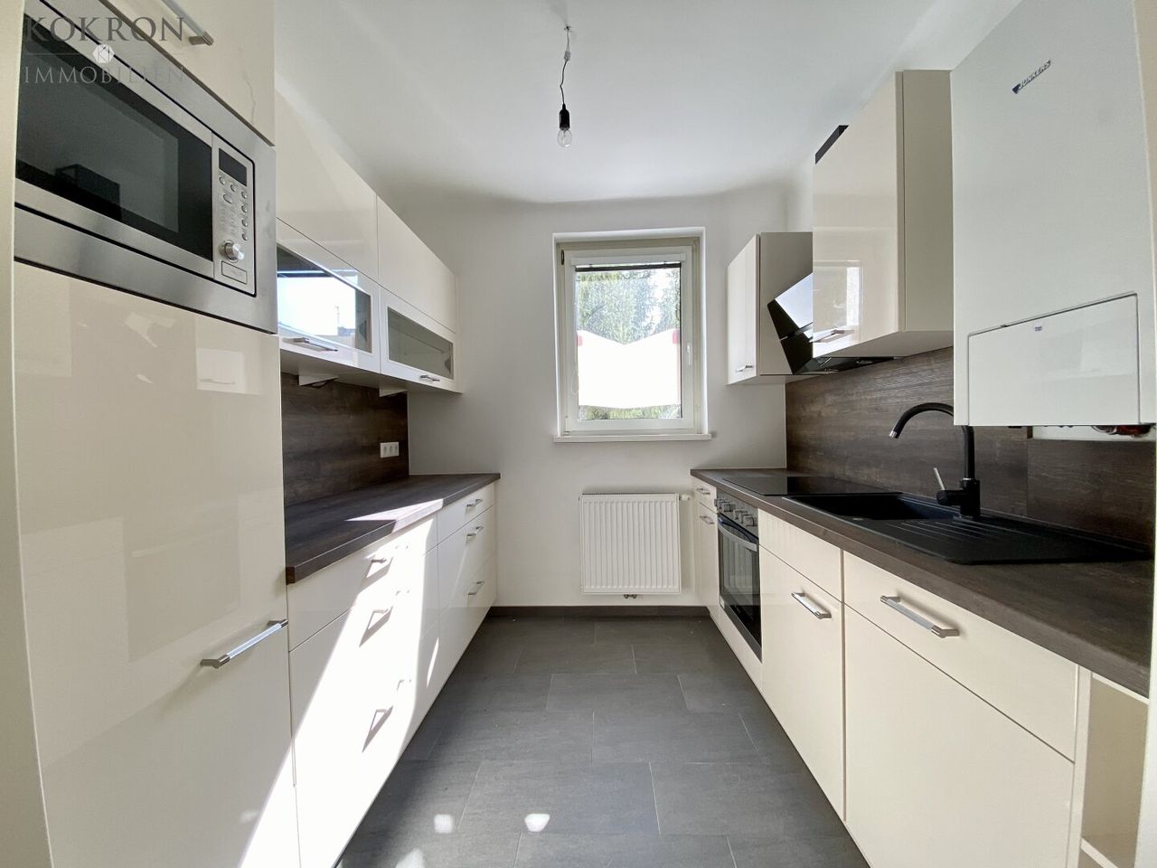 - Vollausgestattete Küche mit allen Geräten und Fenster in den Hof