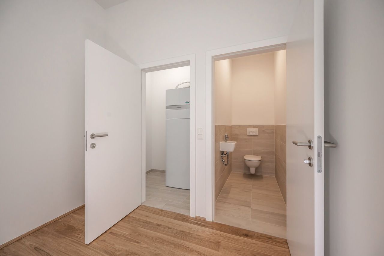 Die Häuser dieses Projekts wurden neu hergestellt und hochwertig ausgestattet. In allen Zimmern wurde ein wunderschöner Parkettboden verlegt, die Nassräume wurden aufwendig verfliest und mit Markenamaturen ausgestattet. Alle Objekte werden mittels Fußbodenheizung beheizt und bieten in Sachen Ausstattung und Ausführung alle Vorzüge eines zeitgemäßen Neubaus.