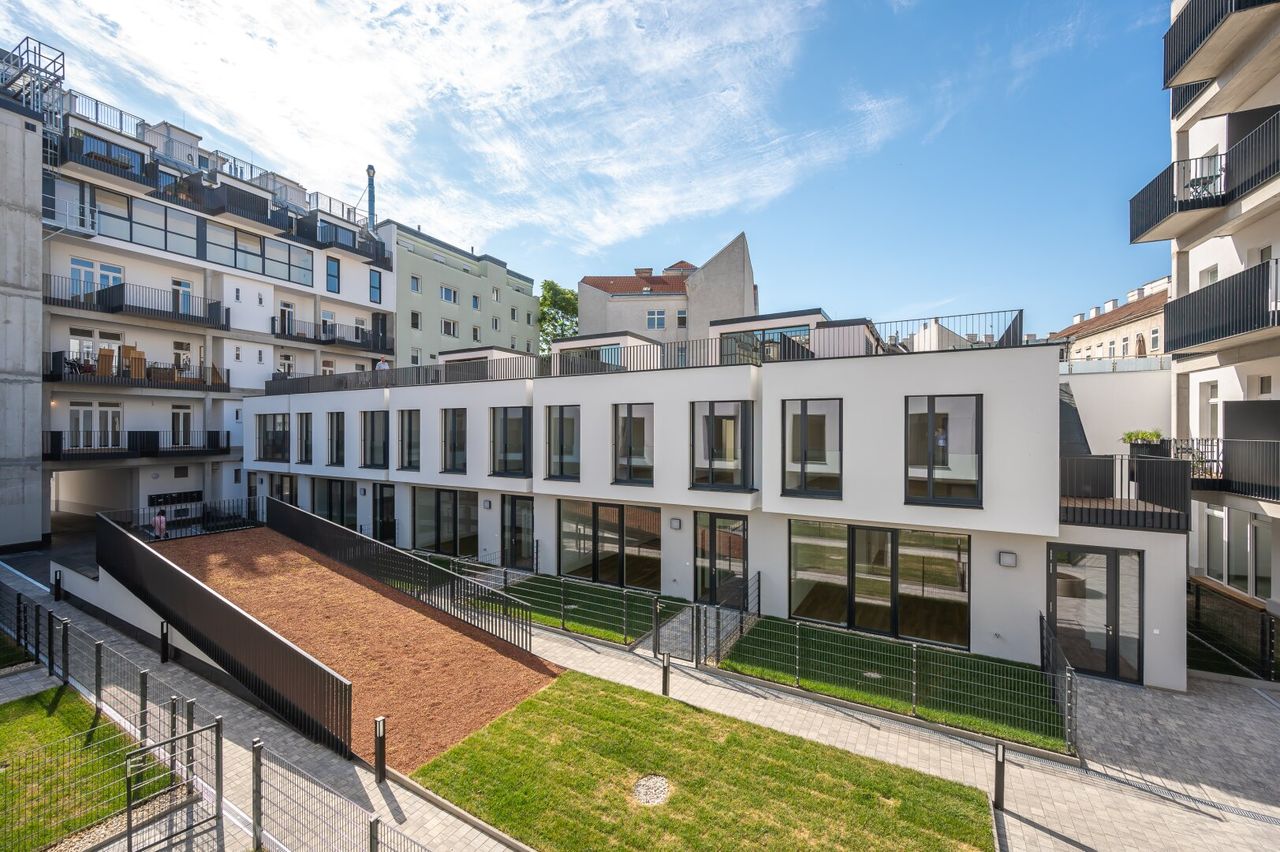 Die Liegenschaft besteht aus zwei Trakten (Straßen- und Hoftrakt). Im Zuge der Projektierung wurden im Hof 10 hochwertige Reihenhäuser mit großzügigen Freiflächen geschaffen.