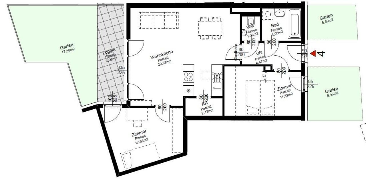 Hopfengasse beim FAC-Platz! 3-Zimmer Neubauwohnung mit 74,18m² Nutzfläche, davon 8,06m² Loggia!