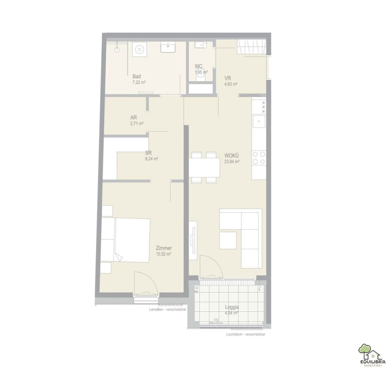 Diese hochwertige , im ersten Stock liegende sehr praktische Wohnung steht ab sofort zur Vermietung Mit ca.63,81m2 Wohnfläche, einer ca.4,54 m2 großer Loggia, bietet dieses Apartment eine sehr hohe Lebens- und Wohnqualität.