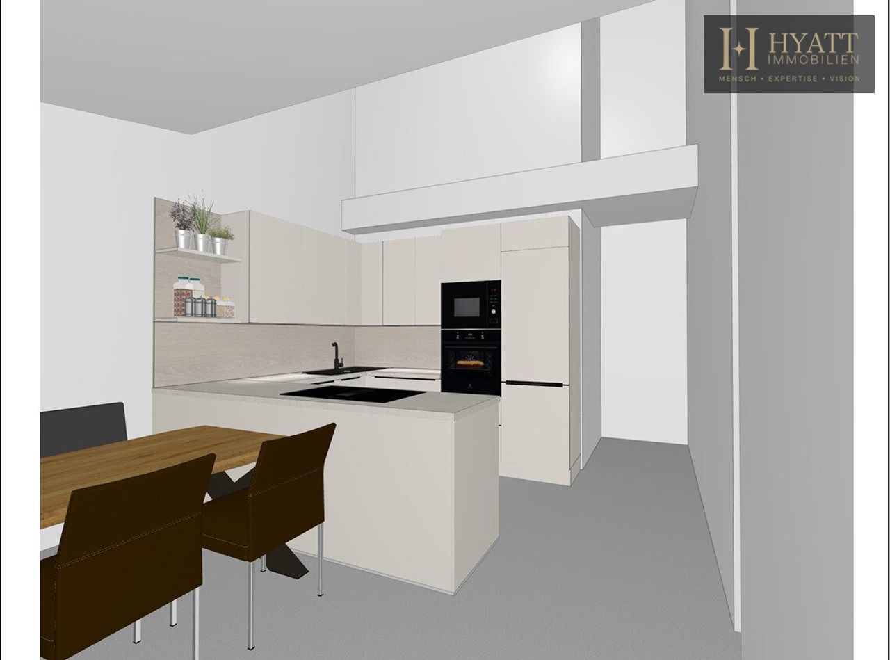 Bereits beim Betreten gelangt man in einen einladenden Vorraum, von dem aus der großzügige Küchen- und Essbereich erreichbar ist. Die moderne Einbauküche ist voll ausgestattet und lässt keine Wünsche offen. Das angrenzende Wohnzimmer überzeugt durch seine Größe und den direkten Zugang zur Terrasse.