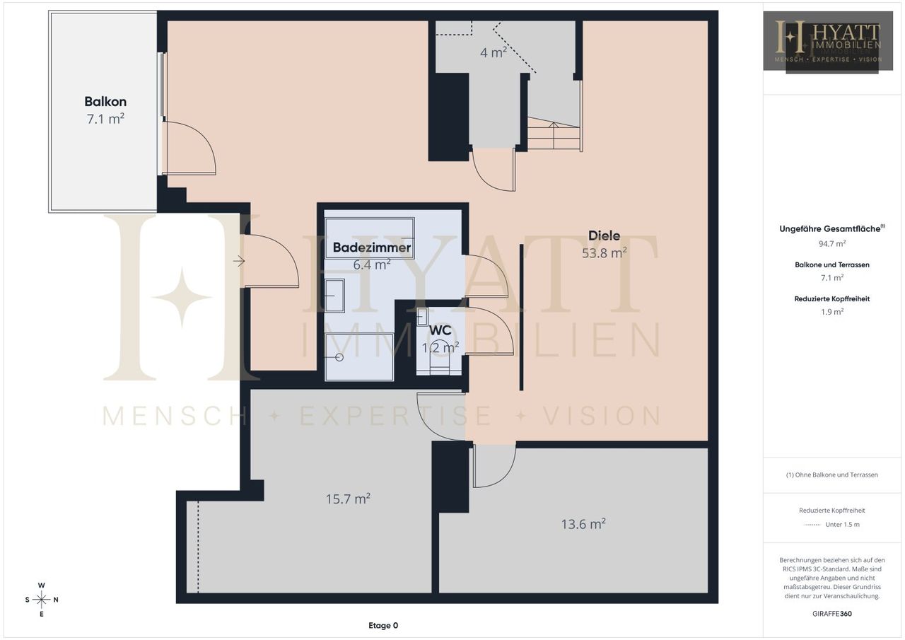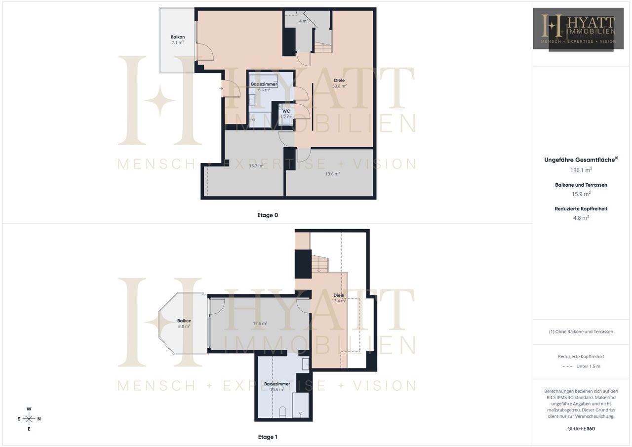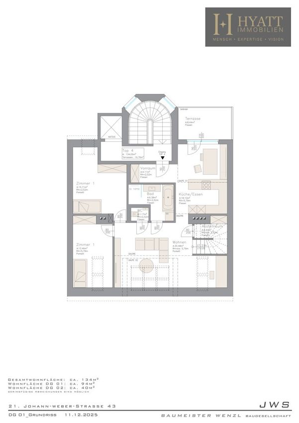 Die gesamte Wohnnutzfläche beträgt ca. 134,85 m² zuzüglich großzügiger Terrassenflächen von insgesamt ca. 19,76 m². Die lichtdurchflutete, nord-süd ausgerichtete Wohnung bietet eine perfekte Balance aus Offenheit und Privatsphäre.