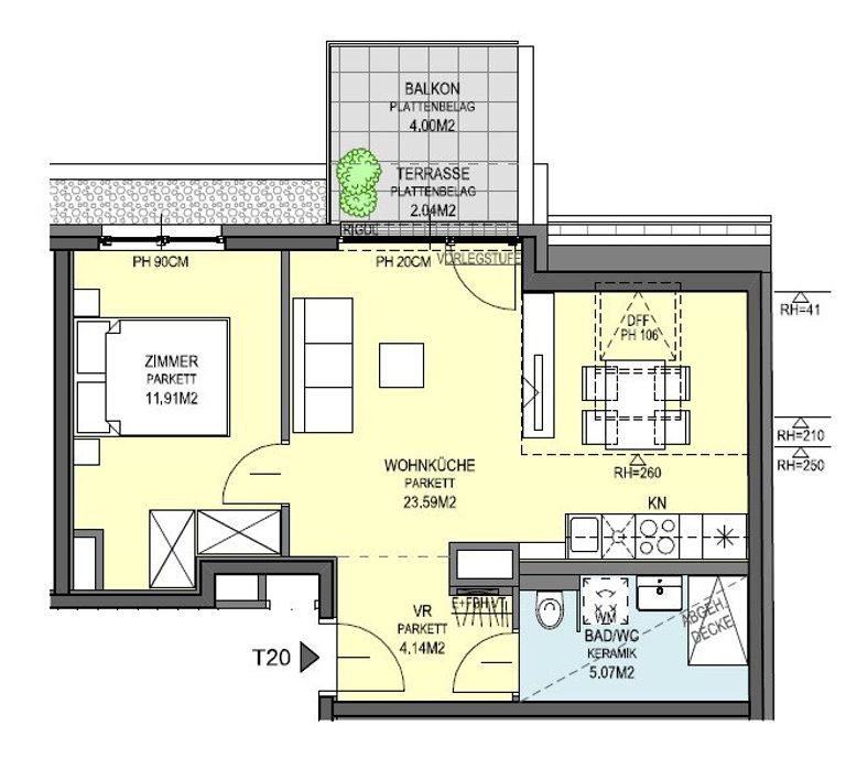 Im vielseitigen und grünen Floridsdorf, in einem 2023 erbauten Neubau, im 4. Liftstock, befindet sich diese sonnige und helle, ca. 45 m² große Dachgeschosswohnung mit herrlicher Süd-West Terrasse und Tiefgaragenplatz.