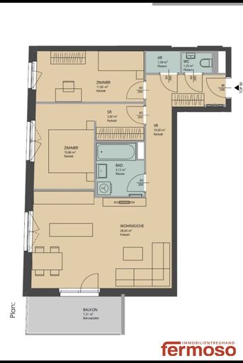 Ein besonderes Highlight ist der Balkon, der zum Entspannen im Freien einlädt. Große Fensterflächen sorgen den ganzen Tag über für viel Licht und schaffen ein angenehmes Wohngefühl. Die Fußbodenheizung garantiert behagliche Wärme, während der hochwertige Parkettboden der Wohnung eine elegante Note verleiht.