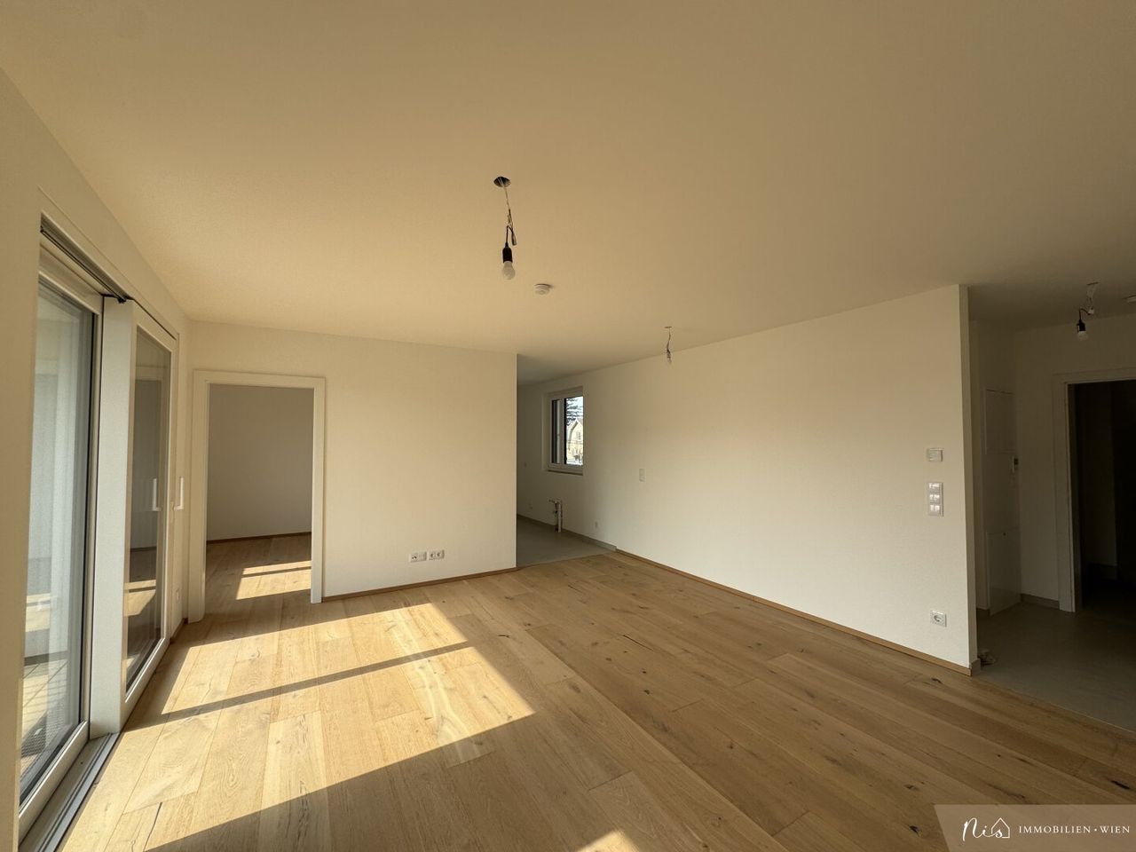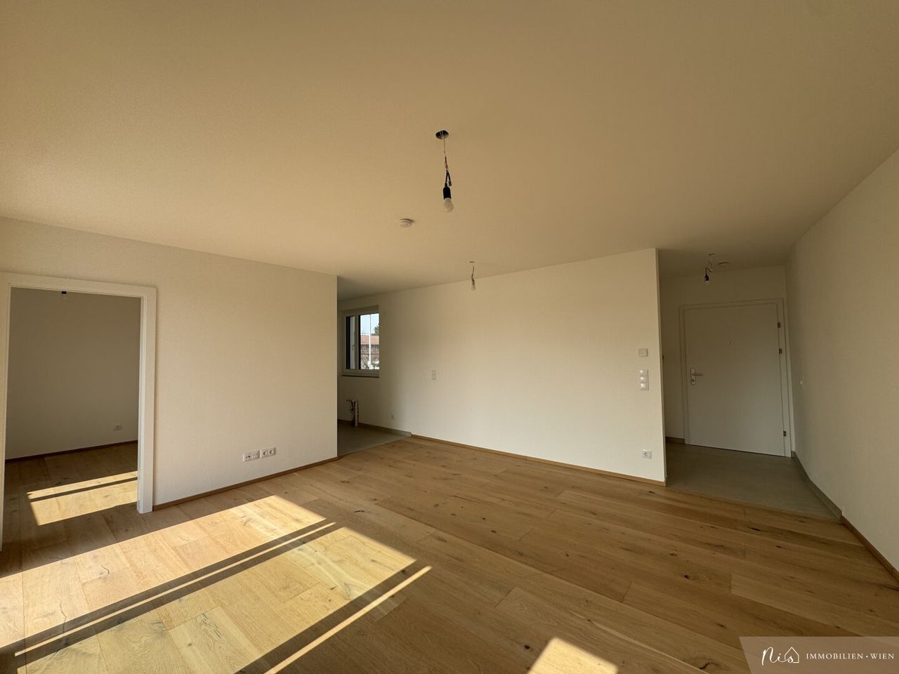 Die Wohnung empfängt Sie über einen praktischen Vorraum von dem aus alle Räume barrierefrei erreichbar sind. Das helle, großzügige Wohn-Ess-Zimmer mit offener Küche (34,07 m²) bildet das Herzstück der Wohnung – ideal zum Leben, Kochen und Entspannen. Durch die Südausrichtung flutet ganztägig Sonnenlicht den Raum und sorgt für ein angenehmes, warmes...