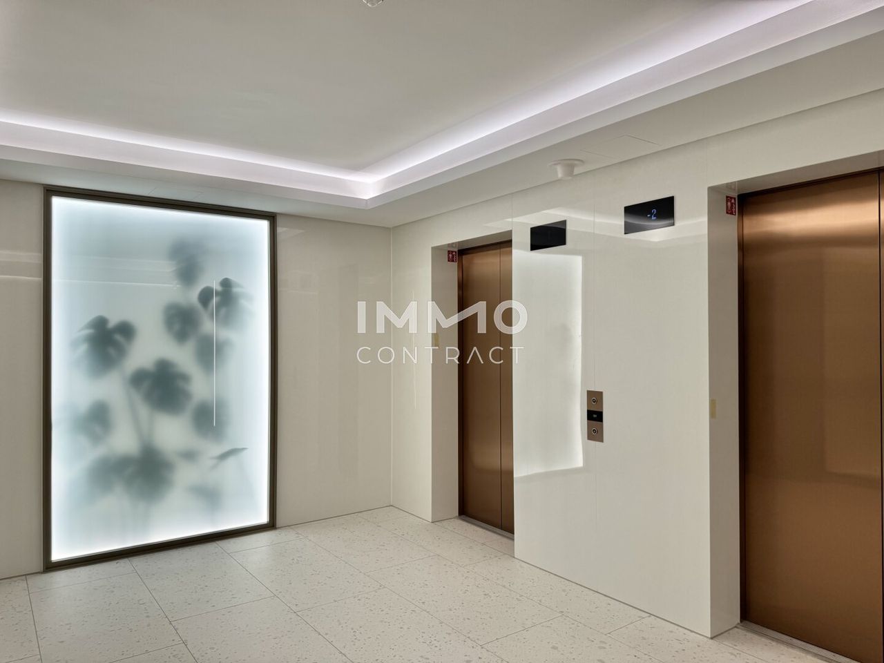 Schon beim Betreten der beeindruckenden zweigeschoßigen Lobby wird die Exklusivität des Gebäudes spürbar. Ein Doorman heißt Sie und Ihre Gäste herzlich willkommen, bevor einer der schnellsten Aufzüge Österreichs Sie in Ihr Stockwerk bringt.