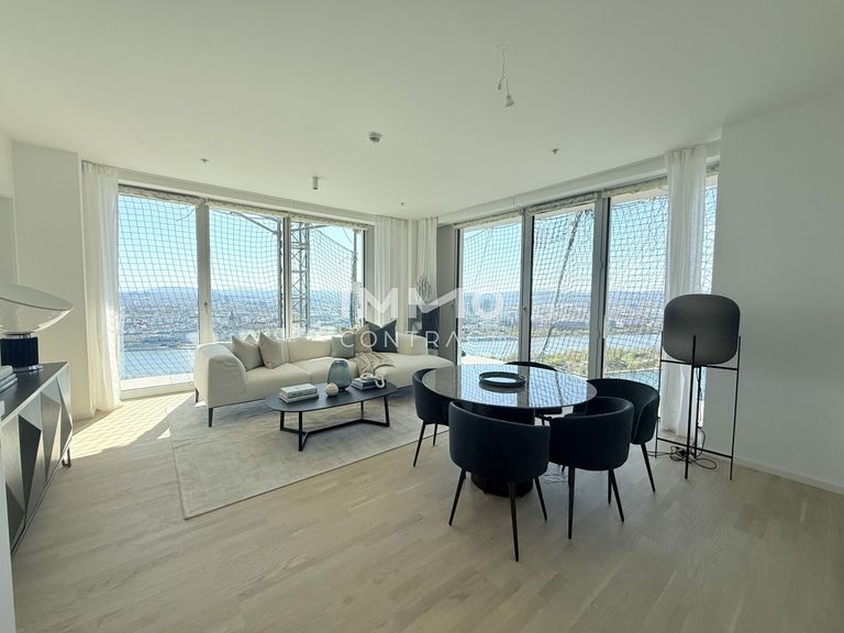 Im DC Tower 2 beginnt Wohnen dort, wo die Stadt in Weite übergeht. Hoch über Wien entfalten sich exklusive Wohnungen mit einem Panorama, das seinesgleichen sucht: Der Blick schweift über die Skyline, folgt der Donau – dem mächtigen „Megawasser“ der Stadt – und reicht bis weit über urbane und landschaftliche Horizonte hinaus. Hier wird Aussicht nicht zum Luxus, sondern zum täglichen Erlebnis.