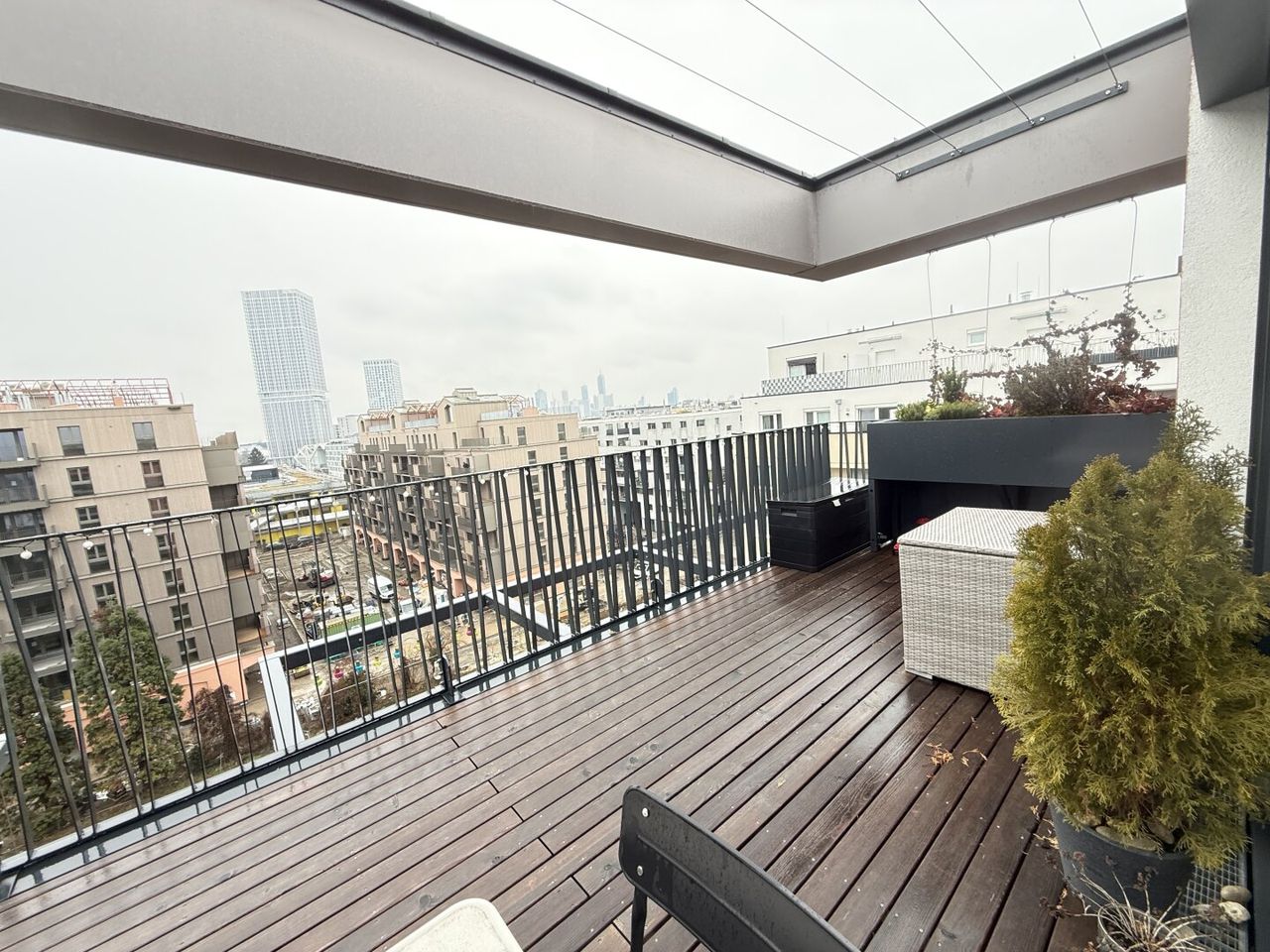 Die Wohnung besticht durch Ihre sehr gute Wohnraumaufteilung, sehr hochwertigen Ausstattung und Bauweise. Sie befindet sich im 7. Stock / Dachgeschoss und hat eine Wohnfläche von ca. 101 m² plus eine ca. 23m² große Terrasse, sowie ein Kellerabteil, einen Tiefgaragenplatz (optional), Fahrradabstellplatz, Fußbodenheizung und Klimaanlage.