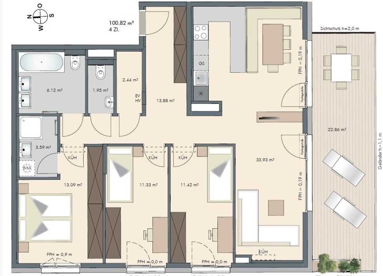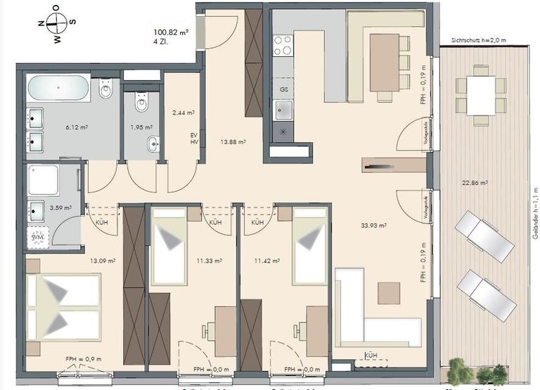 - Ausrichtung Balkon/Terrasse - Süd