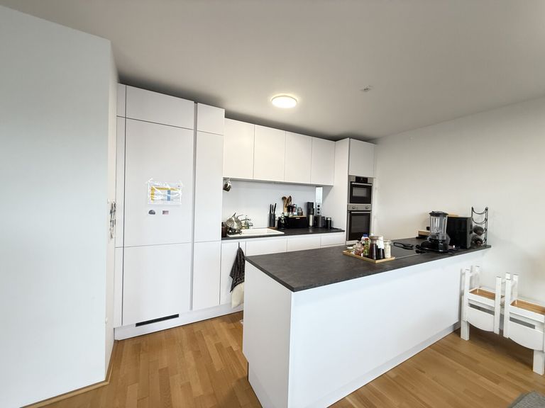 Die Küche ist halb abgetrennt als Einbauküche mit praktisch angelegtem Essplatz und Zugang zur Terrasse. Die Küche beinhaltet alle Geräte des täglichen Bedarfs: Kühl/Gefrierkombination, Geschirrspüler, Induktionskochfeld, 2 Backöfen (einer mit...