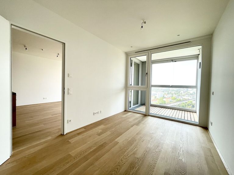 Diese außergewöhnliche Wohnung mit Blick über die Stadt und die Donau befindet sich im 18. Liftstock des VIENNA TWENTY TWO welches 2023 fertiggestellt wurde und unmittelbar bei der Ubahn-Station Kagran (U1) und dem Donauzentrum sowie der Vienna International School (VIS) liegt. Der Turm hat insgesamt 33. Stockwerke und verfügt über eine Vielzahl von Annehmlichkeiten und Freizeitangeboten.