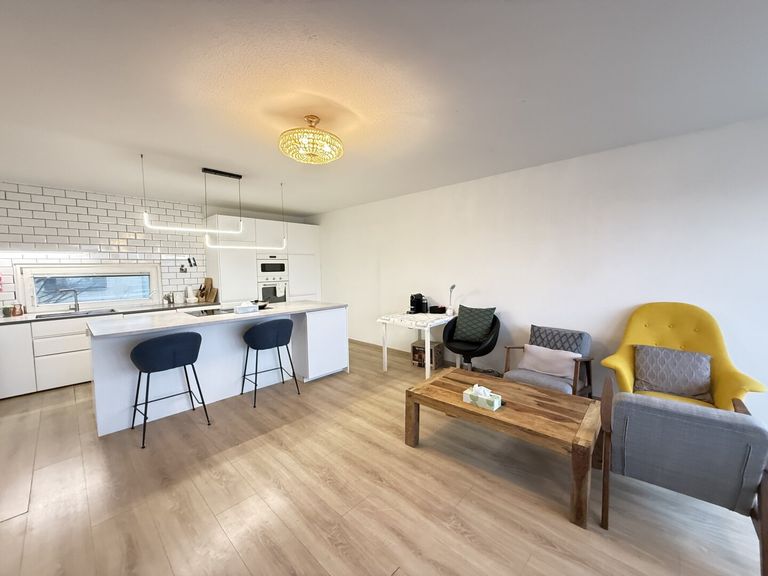 Das Wohnzimmer ist mit einer Küche und Essplatz integriert.