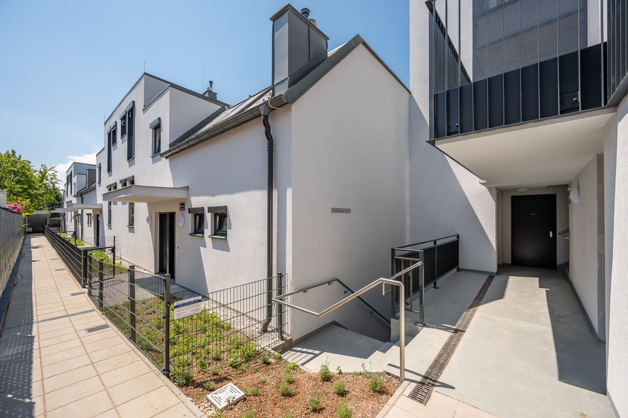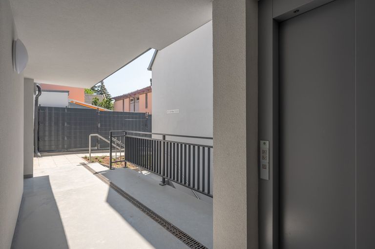 Es handelt sich um einen Neubau mit zwei Geschäftslokalen auf welchem zwei Geschosse aufgebaut wurden (mit Lift). Im Hintertrakt der Liegenschaft befinden sich vier hochwertige Reihenhäuser.