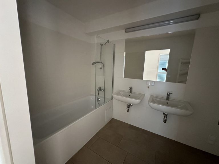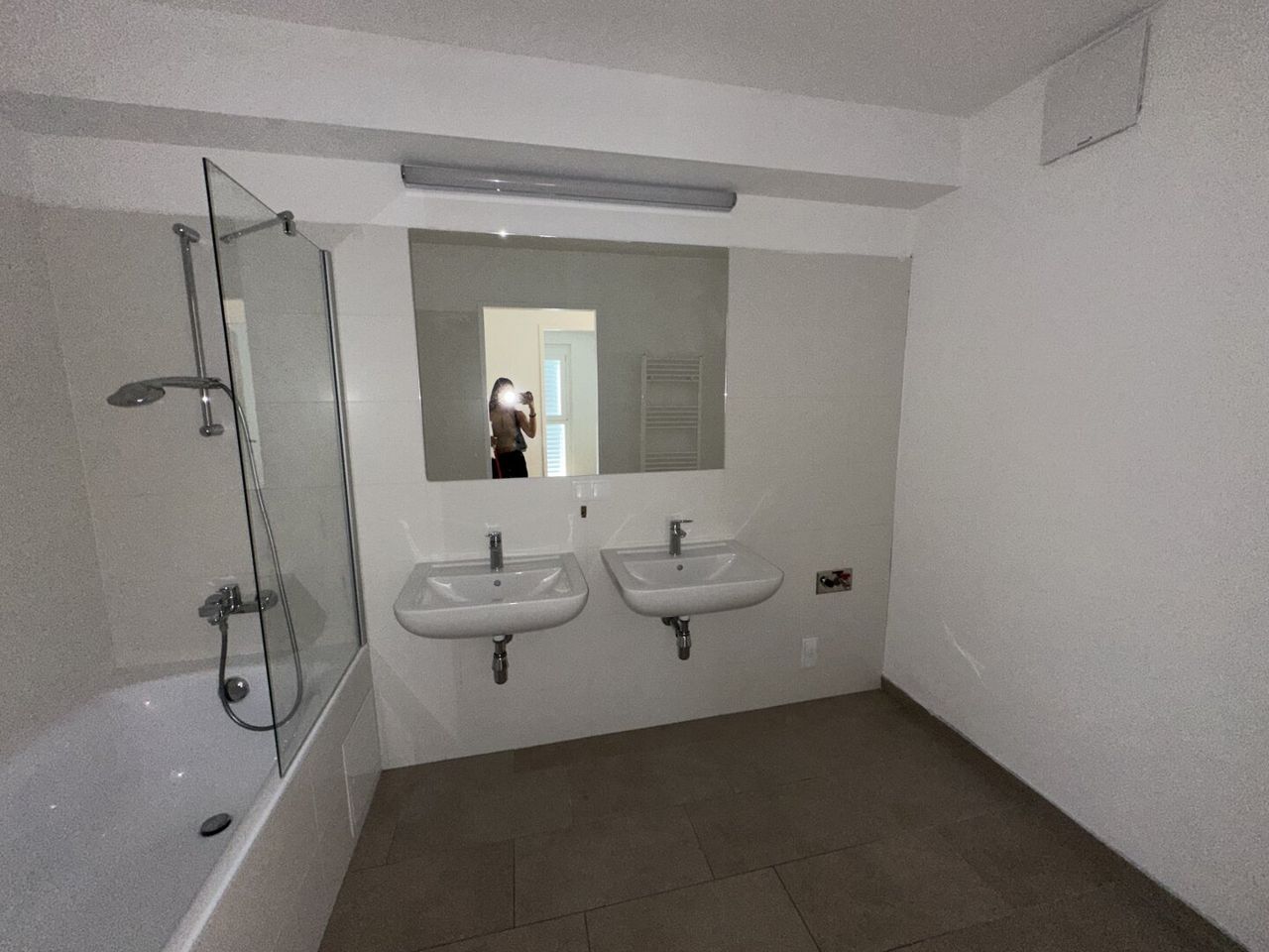 Beim Betreten der Wohnung empfängt Sie ein einladenden Flur, welcher Platz für eine gemütliche Garderobe bietet. Gleich rechts befindet sich das separate WC inkl. Handwaschbecken und das Badezimmer, welches mit einer Badewanne, zwei Waschbecken und einem Waschmaschinenanschluss ausgestattet ist. Den Gang entlang kommen Sie an zwei...