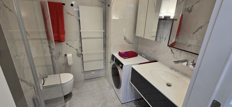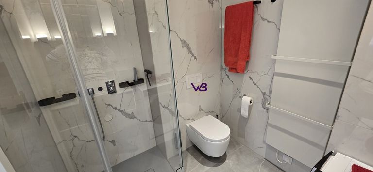 Handtuchheizung und Boden mit Feinsteinzeug, Heizung/Kühlung mittels Decken-Betonkernaktivierung (Wohnraum), Fußbodenheizung (Badezimmer) Zentral, temperierte Wohnraumbelüftung mit Filteranlage (Allergenepollen) Balkon mit Bambusbelag und Pflanztrog mit automatisch und zentral gesteuerter Bewässerungsanlage